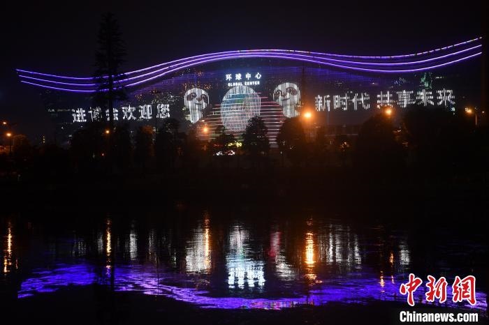成都環(huán)球中心被第三屆中國(guó)國(guó)際進(jìn)口博覽會(huì)標(biāo)語(yǔ)“點(diǎn)亮”?!埨恕z