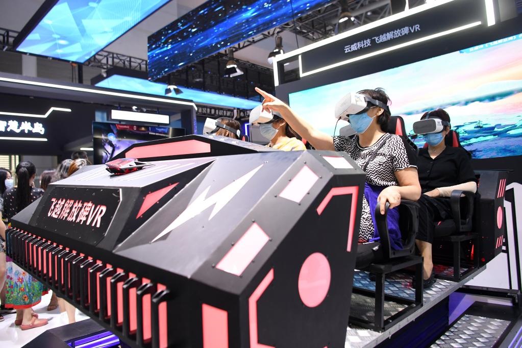 觀眾在2021智博會(huì)上通過VR技術(shù)體驗(yàn)重慶美景。新華社記者 唐奕 攝