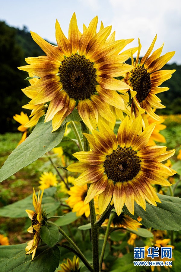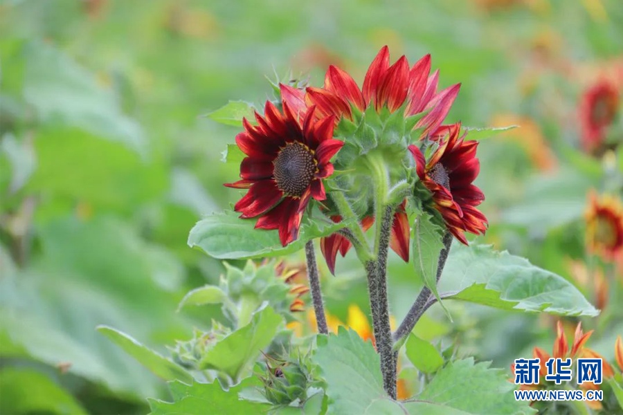 溫泉街道彩色向日葵(7月29日攝)。新華網發(fā)(安寧市溫泉街道供圖)