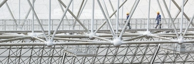 2月13日,工作人員從“中國天眼”的圈梁上經(jīng)過。以上圖片均為新華社記者歐東衢攝