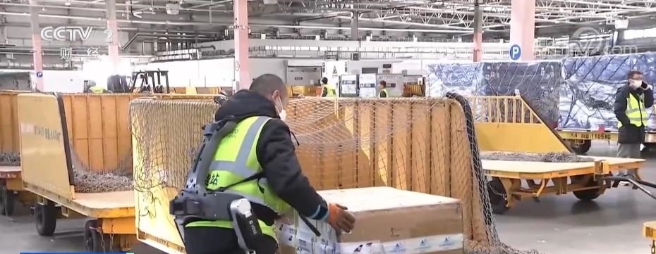 春節(jié)前后貨站的來貨量大增,貨物品種多樣,包裝規(guī)格也不盡相同,很多都需要人工處理。在大興機場的國內(nèi)貨運站里記者看到,負責搬運的工作人員身穿外骨骼機器人,將很大的貨運箱輕松搬起。工作人員相春江告訴記者,他們貨站前兩年就引進了外骨骼機器人,但是之前貨量小,使用頻率并不高,真正用起來還是在最近。