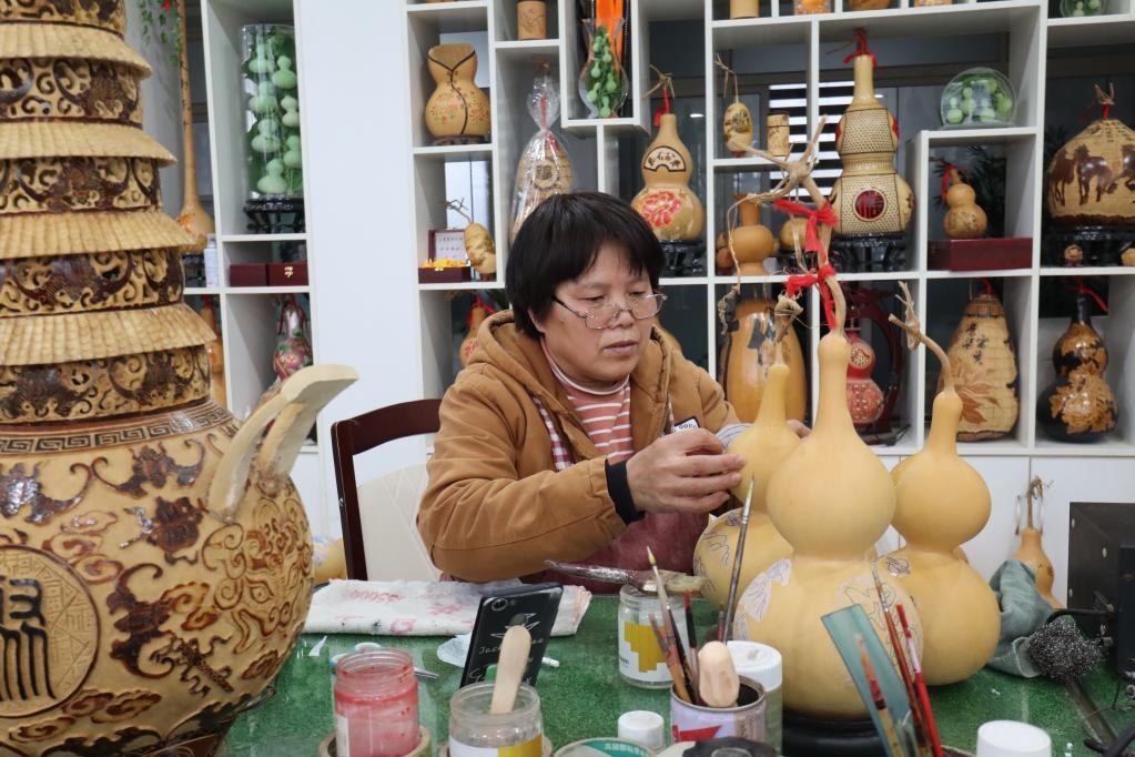 村民在制作工藝葫蘆。新華社記者 張力元 攝