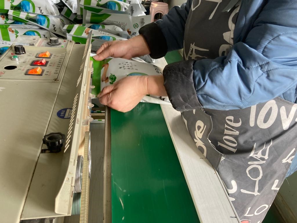 悅來頤和食用菌種植專業(yè)合作社社員在進行猴頭菇產(chǎn)品包裝塑封。新華社記者 金地 攝