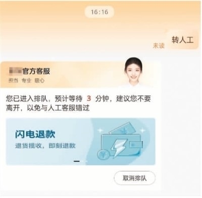 現實中,智能客服的出現的確提供了諸多便利,但當智能客服的標準化應答無法解決遇到的具體問題時,更多用戶便轉向人工客服。然而,人工客服的接通率較低。有網友反映,即便通過排隊接入人工客服,有時為了提交信息退出聊天窗口后,又需重新排隊進入,而此時,人工客服已換人,之前提出的問題也需要重復表述。