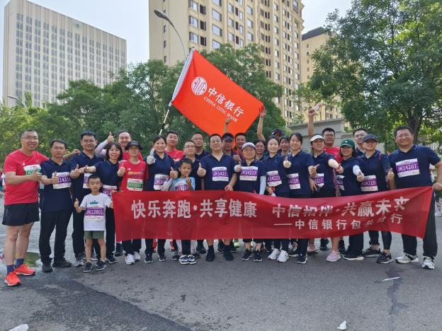 賽場上,在由包頭市當(dāng)?shù)馗鞔笃髽I(yè)組織的健康跑跑團(tuán)中,中信銀行包頭分行組織33名職工和馬拉松愛好者踴躍參賽,著裝整齊,精神飽滿,以實(shí)際行動(dòng)踐行“快樂奔跑共享健康中信相伴共贏未來”,展現(xiàn)了中信銀行人奮力拼搏、奮勇向前的精神風(fēng)貌,成為本屆馬拉松賽事上一道亮麗的金融風(fēng)景線。