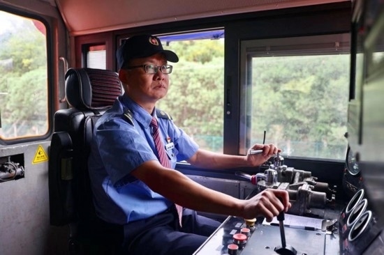 黃偉在操作機(jī)車(chē)。受訪者供圖