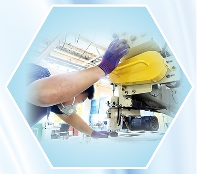 萬基萬公司砂輪生產(chǎn)部工作人員正在檢測砂輪硬度。金成勛攝