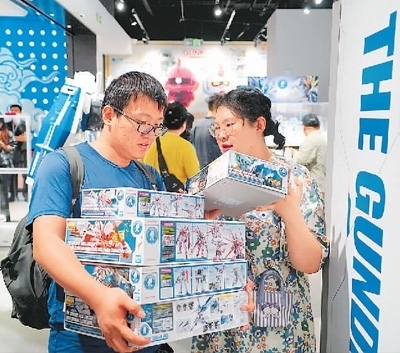 5月17日,北京高達基地旗艦店在王府井銀泰in88開業(yè),現(xiàn)場成品高達模型吸引不少市民參觀。圖為消費者正在選購。宋家儒攝(人民圖片)