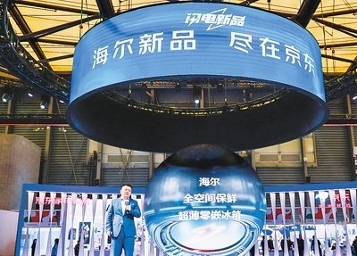 2024年中國家電及消費電子博覽會現(xiàn)場,京東攜手海爾等品牌首發(fā)數(shù)十款家電新品。受訪者供圖
