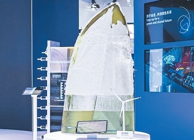 西門子能源展出全球首款可回收風(fēng)機(jī)葉片。葉片使用周期結(jié)束后,其部件材料可通過(guò)工業(yè)化方式,進(jìn)行樹(shù)脂和纖維材料的安全環(huán)保分離,回收的纖維材料仍保持良好性能。本報(bào)記者 廖睿靈攝