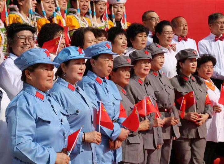 開展建黨百年群眾文化系列活動以來,呼市共舉辦大型專場演出20余場。在人民公園設置了“永遠跟黨走——群眾文化廣場”、“合唱廣場”、“廣場舞廣場”,給廣大群眾提供了參與建黨百年群體活動的集中展示平臺,進一步豐富了廣大人民群眾的精神生活,營造出全社會感黨恩、頌黨恩的濃厚氛圍。此外,青城公園內(nèi)三個“主題廣場”設立后,廣大市民群眾也紛紛合影留念,自發(fā)組織起來唱紅歌、跳廣場舞,以多種形式積極參與活動。據(jù)統(tǒng)計,截至目前由群眾自發(fā)組織在社區(qū)、公園、廣場開展的展演活動近千余場,參與人數(shù)達幾十萬人次,掀起了建黨100周年群眾性文化活動的高潮。