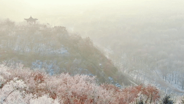山峰、樹木都被冰雪點(diǎn)綴,粉妝玉砌,銀光閃爍。晶瑩剔透的霧凇與蜿蜒的山路交相輝映,構(gòu)成了一幅壯觀的冬雪美麗畫卷。
