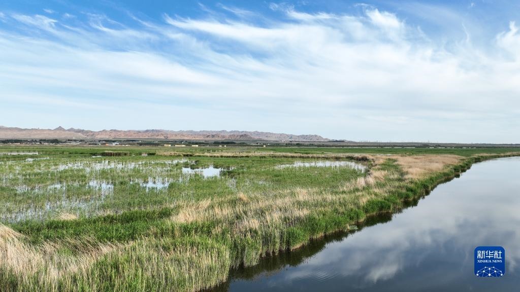 這是6月4日拍攝的位于內(nèi)蒙古巴彥淖爾市烏拉特前旗的烏梁素海(無(wú)人機(jī)照片)。