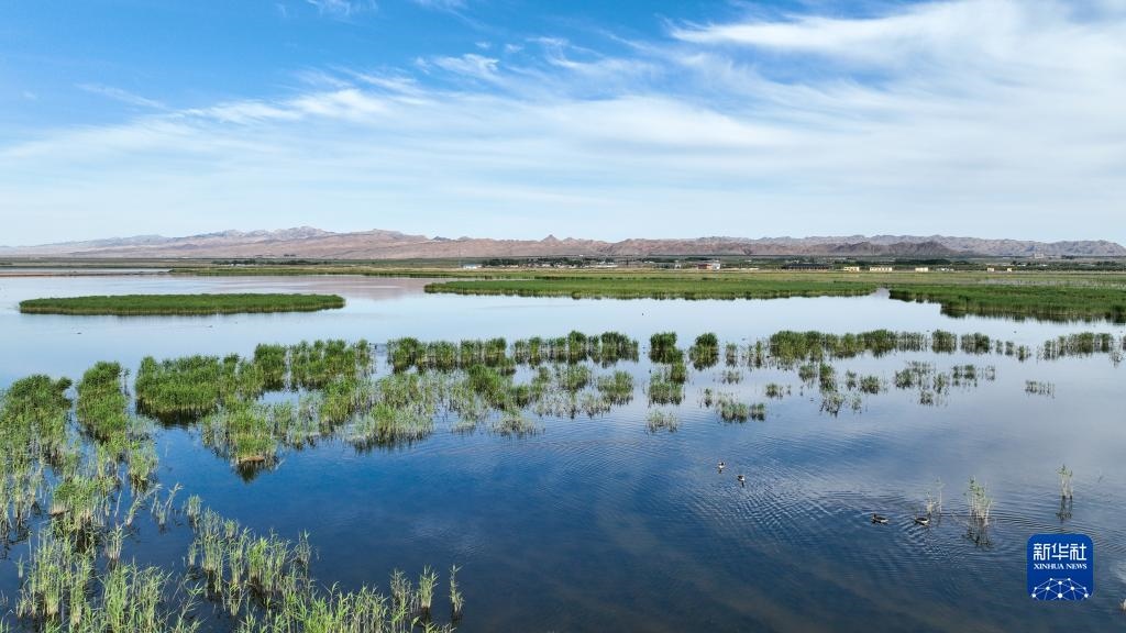 夏日里,位于內(nèi)蒙古巴彥淖爾市烏拉特前旗的烏梁素海波光粼粼,風(fēng)景如畫(huà)。