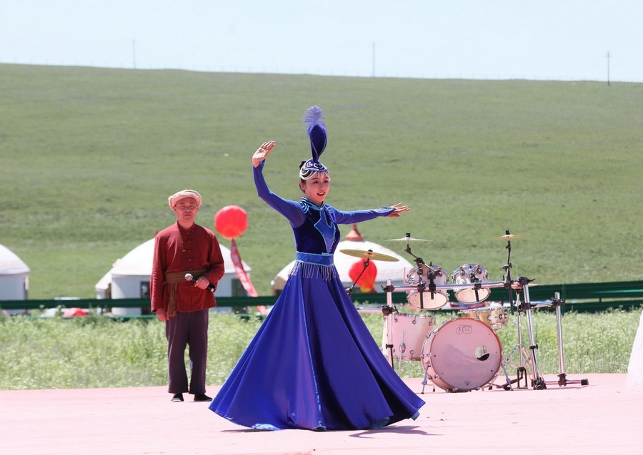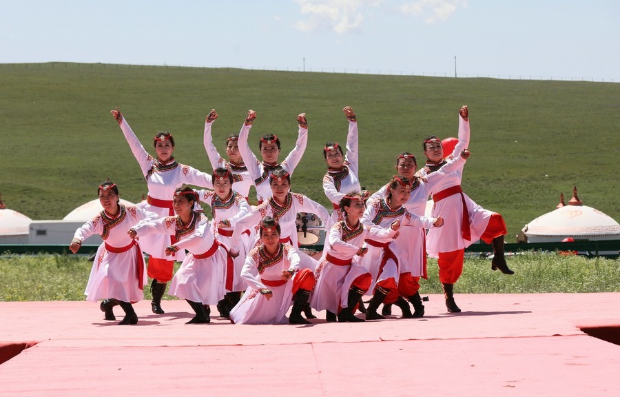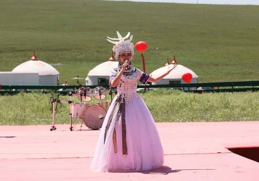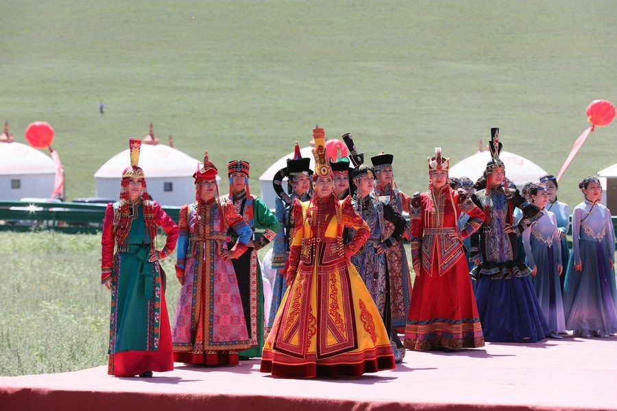 伴著悠揚(yáng)的歌聲,踏著激昂的步伐,在旗幟方隊(duì)的引領(lǐng)下,哈達(dá)方隊(duì)、民族方隊(duì)、烏蘭牧騎方隊(duì)、牧馬人方隊(duì)、裁判員及運(yùn)動員方隊(duì)依次走進(jìn)會場。隨著彩煙燃放,氣球升空,那達(dá)慕在梅林組合的歌曲《歡騰那達(dá)慕》中拉開帷幕。隨后,歌伴舞《石榴花開》等節(jié)目輪番登場,現(xiàn)場觀眾掌聲雷動,讓來自全國各地的游客在紅石崖高山牧場領(lǐng)略了草原的柔情。