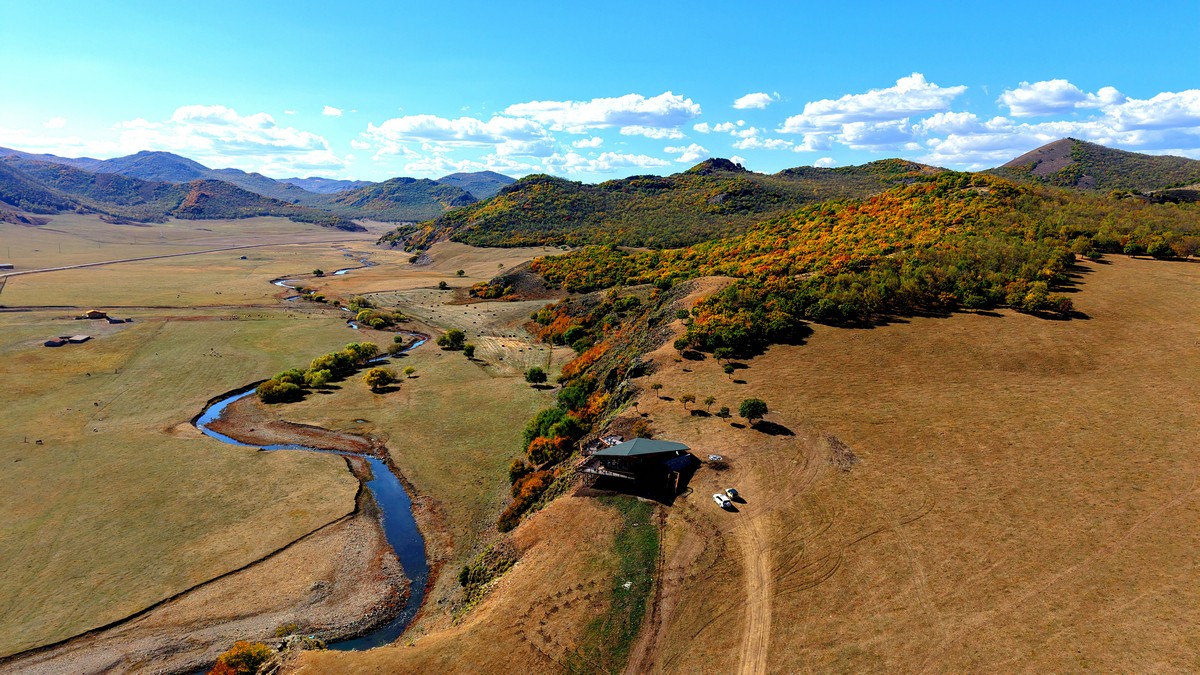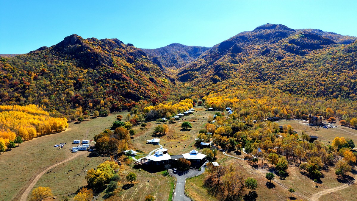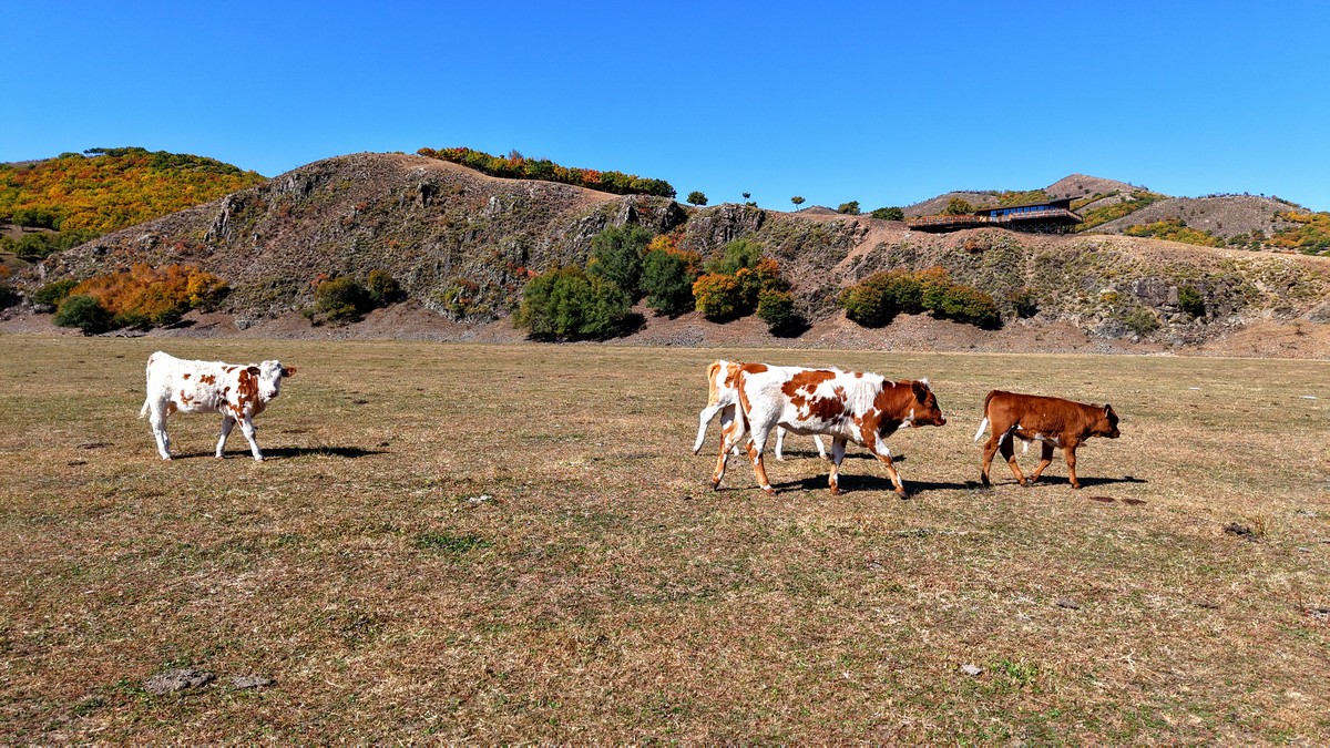 黑羊山旅游度假區(qū),海拔1319米,因這里的山形似黑羊頭得名。金秋時節(jié),整個景區(qū)被一片五彩斑斕的世界所籠罩,藍天、白云、溪流、牛羊群構成一幅醉人的畫卷,恍若進入童話世界。
