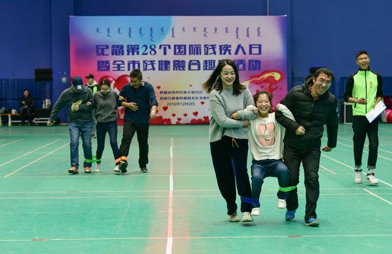 12月 2日,在呼和浩特市全民健身中心綜合體育館,參加殘健融合趣味活動(dòng)的隊(duì)員們正在進(jìn)行比賽。當(dāng)日,由呼和浩特市殘疾人聯(lián)合會(huì)主辦,以“提高殘疾人的參與度和領(lǐng)導(dǎo)力”為主題,紀(jì)念第28個(gè)國(guó)際殘疾人日暨全市殘健融合趣味活動(dòng)在該館舉行。活動(dòng)旨在進(jìn)一步發(fā)展殘疾人事業(yè),豐富殘疾人文化體育生活,推動(dòng)殘疾人文化體育事業(yè)健康發(fā)展。(內(nèi)蒙古日?qǐng)?bào)社融媒體記者 懷特烏勒斯攝)