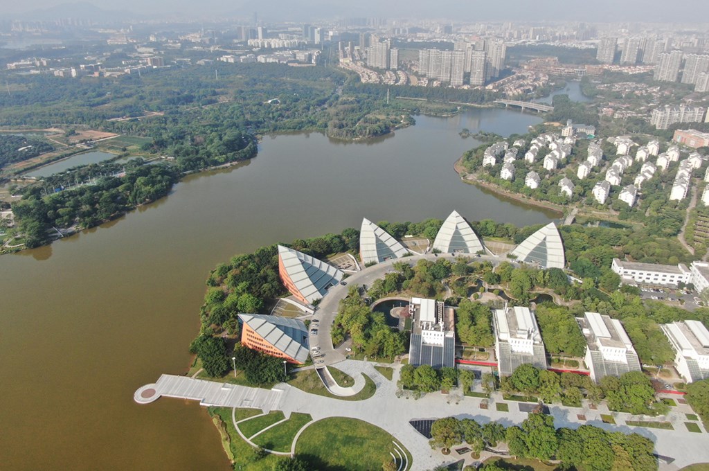這是東莞松山湖風(fēng)景(2021年4月21日攝,無人機(jī)照片)。