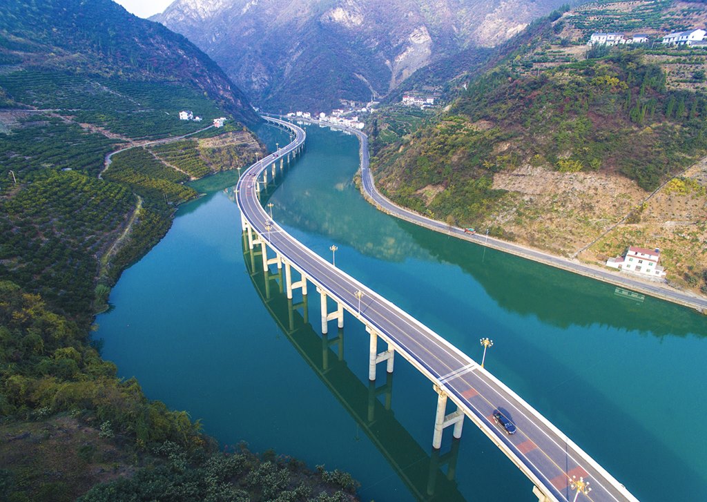 這是湖北省興山縣水上公路(2016年12月18日攝,無人機(jī)照片)。