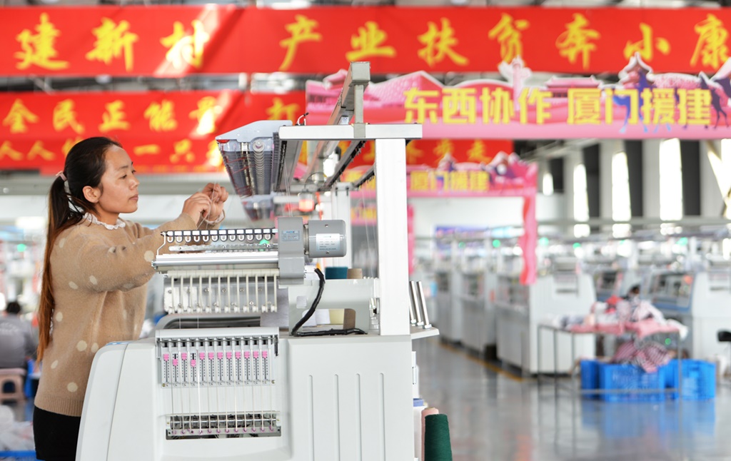 近年來,在東西部扶貧協(xié)作機(jī)制下,福建省廈門市幫助甘肅省臨夏回族自治州引進(jìn)服裝鞋帽、戶外用品、文化旅游、農(nóng)產(chǎn)品深加工等企業(yè),吸納當(dāng)?shù)剞r(nóng)民就地就近就業(yè)。新華社發(fā)(史有東 攝)