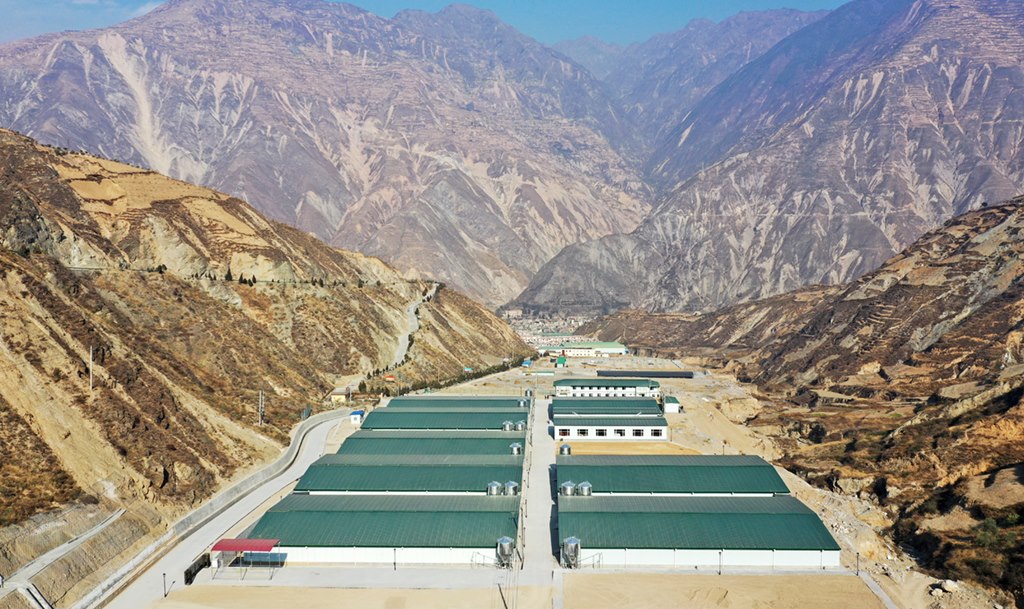 這是青島市幫扶建設(shè)的甘肅隴南市武都區(qū)康大肉兔養(yǎng)殖場(chǎng)(2021年1月19日攝,無人機(jī)照片)。