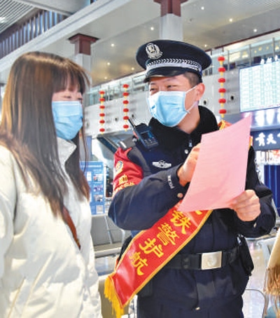 電子臨時(shí)身份證的推行增強(qiáng)了旅客出行的便捷性。圖為春運(yùn)首日,大同鐵路公安處民警為旅客講解電子臨時(shí)身份證在手機(jī)軟件上的使用方法。