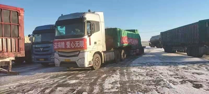 3月1日清晨,錫林郭勒盟至呼和浩特的后山地區(qū)飄著小雪,氣溫在零下10度以下,但是,風(fēng)雪擋不住來(lái)自錫林郭勒大草原的一片片愛(ài)。一輛17米帶掛卡車長(zhǎng)驅(qū)千里十多小時(shí),帶著錫林郭勒大草原的問(wèn)候,連夜運(yùn)輸?shù)胶艉秃铺兀粸樵琰c(diǎn)送達(dá)100萬(wàn)只一次性醫(yī)用外科口罩。這輛卡車上掛著內(nèi)容為“祝青城人民早日戰(zhàn)勝疫情,錫盟公益助力呼和浩特市”和“洶洶疫情不可怕,齊心協(xié)力戰(zhàn)勝它”的條幅,表達(dá)“中國(guó)馬都”向“中國(guó)乳都”的真切問(wèn)候。