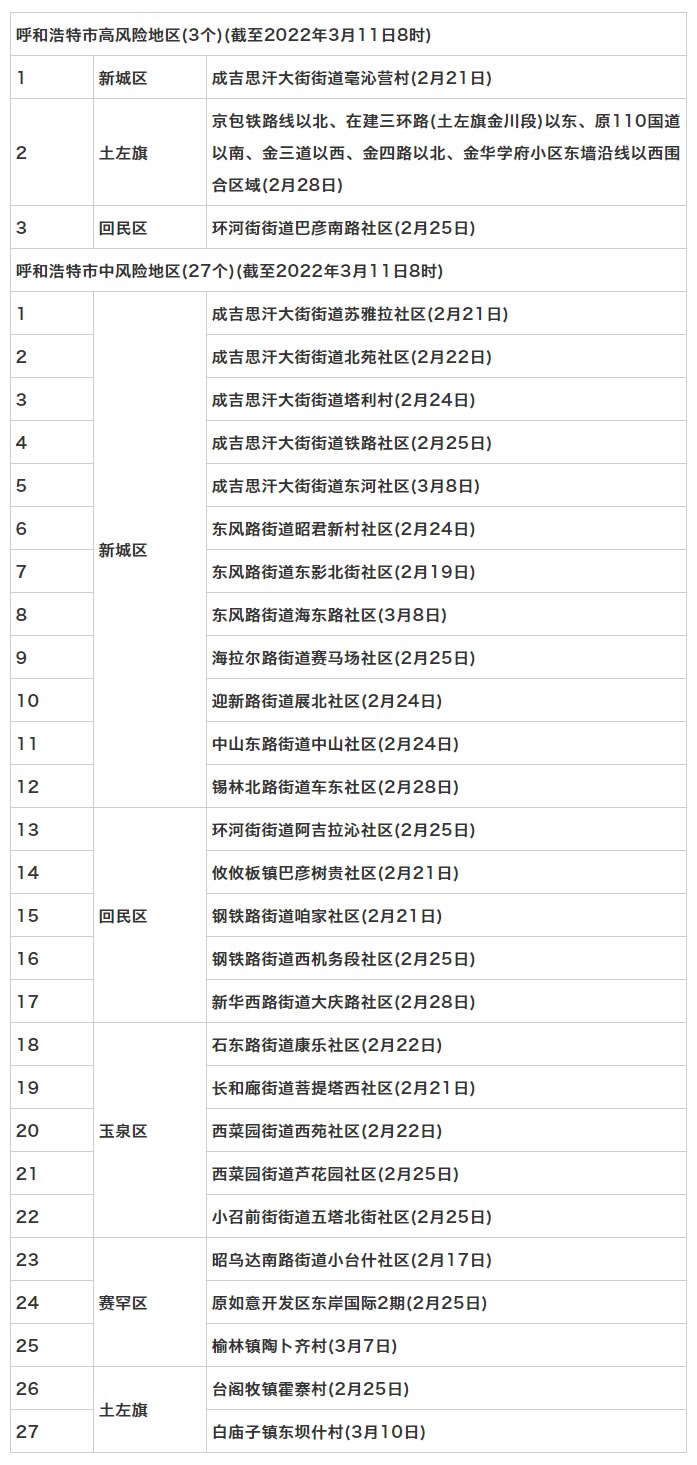 3+27!呼和浩特調(diào)整部分地區(qū)疫情風(fēng)險(xiǎn)等級(jí)