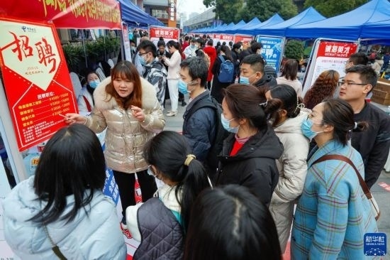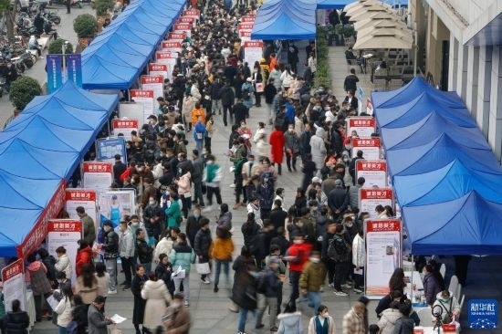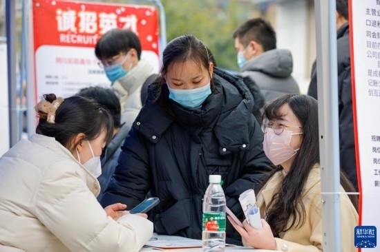 2月17日,人們在中國成都人力資源服務產業(yè)園查看招聘信息,尋找工作機會。