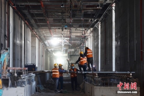 2月20日,施工人員在北京地鐵12號(hào)線東壩車輛段施工。北京地鐵12號(hào)線正線全長(zhǎng)為29.6km,西起西四環(huán)四季青橋南,東至東壩北街,途經(jīng)海淀、西城、東城、朝陽(yáng)四個(gè)行政區(qū),全線共設(shè)21座車站,其中換乘站15座,全線建成通車后,將與4號(hào)線、5號(hào)線、8號(hào)線等12條線路實(shí)現(xiàn)換乘。當(dāng)前12號(hào)線車輛陸續(xù)進(jìn)場(chǎng),工程正在加速推進(jìn)。中新社記者 富田 攝