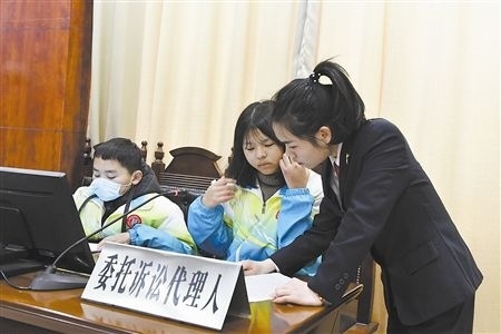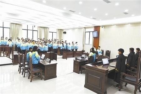 伴隨著“小法官”手中的法槌落下,一場庭審體驗(yàn)活動(dòng)正式開始。在法庭干警的指導(dǎo)下,8名學(xué)生“一秒入戲”,從宣讀法庭紀(jì)律、核對當(dāng)事人身份,到法庭調(diào)查、舉證質(zhì)證、法庭辯論,整個(gè)庭審程序嚴(yán)謹(jǐn)規(guī)范、秩序井然。