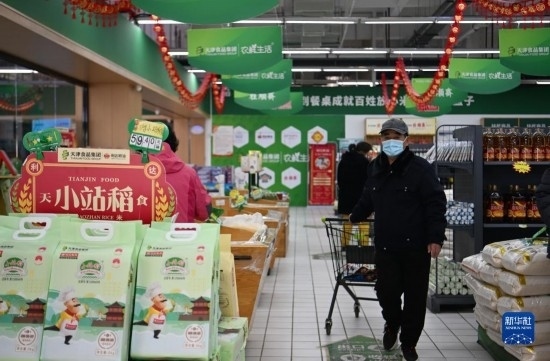 顧客在天津食品集團(tuán)津農(nóng)精品體驗(yàn)店選購產(chǎn)品(2月23日攝)。