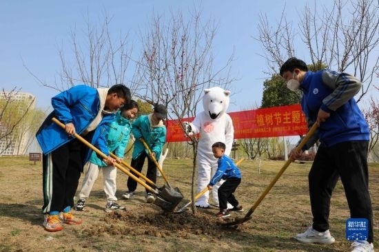 當(dāng)日,合肥市包河區(qū)濱湖世紀社區(qū)聯(lián)合轄區(qū)消防工作人員在雨水公園開展“手牽手護綠一起行”義務(wù)植樹活動,綠化家園。