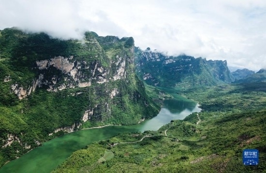 貴州省北盤江大峽谷國家濕地公園風貌(2018年8月7日攝,無人機照片)。