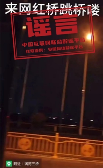 真相:近日,某網(wǎng)民發(fā)布以安徽蚌埠懷遠渦河三橋為背景、配有“來網(wǎng)紅橋跳橋嘍”文字的視頻,并在評論區(qū)發(fā)布“昨晚上12點又一個跳橋的”等言論。經(jīng)當?shù)鼐W(wǎng)安和公安核查、求證,近日懷遠渦河三橋并未發(fā)生過跳橋事件,該信息確系謠言。視頻發(fā)布人梁某新為尋求刺激、博取流量,故意捏造虛假信息并在抖音平臺上傳播。屬地公安機關(guān)已對梁某新予以行政拘留5日處罰,其發(fā)布謠言的抖音賬號被依法注銷。(來源:“公安部網(wǎng)安局”微信公眾號、安徽網(wǎng)絡(luò)辟謠平臺)