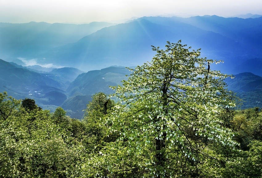 時(shí)下,正是珙桐花開(kāi)的季節(jié),一朵朵珙桐花如白鴿舒展雙翅,在林中翩翩起舞,為美麗的大風(fēng)頂增添了一絲靈動(dòng)。