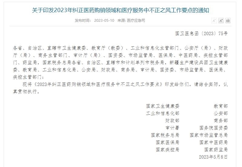 ·14部門聯(lián)合發(fā)文:糾正醫(yī)藥購銷領(lǐng)域和醫(yī)療服務(wù)中不正之風(fēng)。