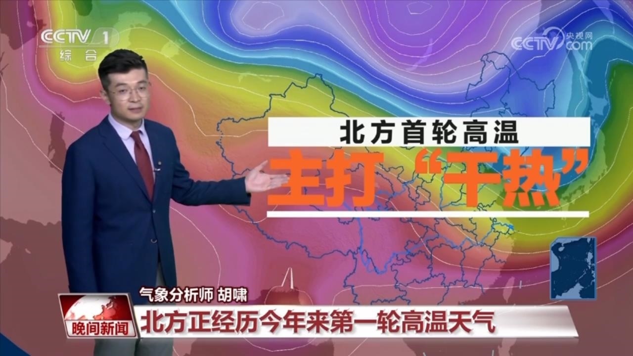 氣象分析師 胡嘯:目前,我們國家北方正在經(jīng)歷今年第一輪大范圍的高溫天氣過程。這一輪高溫天氣過程最大的特點(diǎn),就是干熱。伴隨著一個(gè)高壓擠區(qū)的逐漸東移,高溫逐漸顯現(xiàn),在擠區(qū)之內(nèi)是下沉增溫,晴朗少云的天氣。