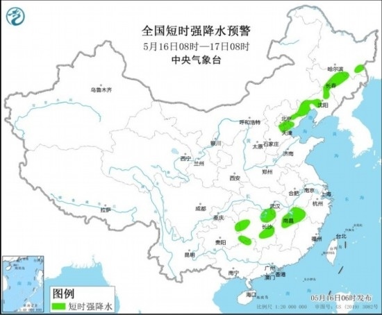 16日至17日,江漢南部、江南大部、華南北部等地有中到大雨,局地暴雨;東北地區(qū)、華北東部有小到中雨,部分地區(qū)大雨。預計5月16日08時至17日08時,內(nèi)蒙古東南部、吉林中部、遼寧中西部、河北中北部、北京、天津、湖南北部等地的部分地區(qū)將有8-10級雷暴大風或冰雹天氣,局地風力可達11-12級;黑龍江東南部、吉林中部、遼寧中西部、河北中北部、北京東部、天津、湖北東南部、湖南、江西中北部等地的部分地區(qū)將有短時強降水天氣,小時雨量20-40毫米,局地可達50毫米以上。預計,強對流的主要影響時段為今天午后至前半夜。中央氣象臺5月16日06時發(fā)布強對流天氣藍色預警。