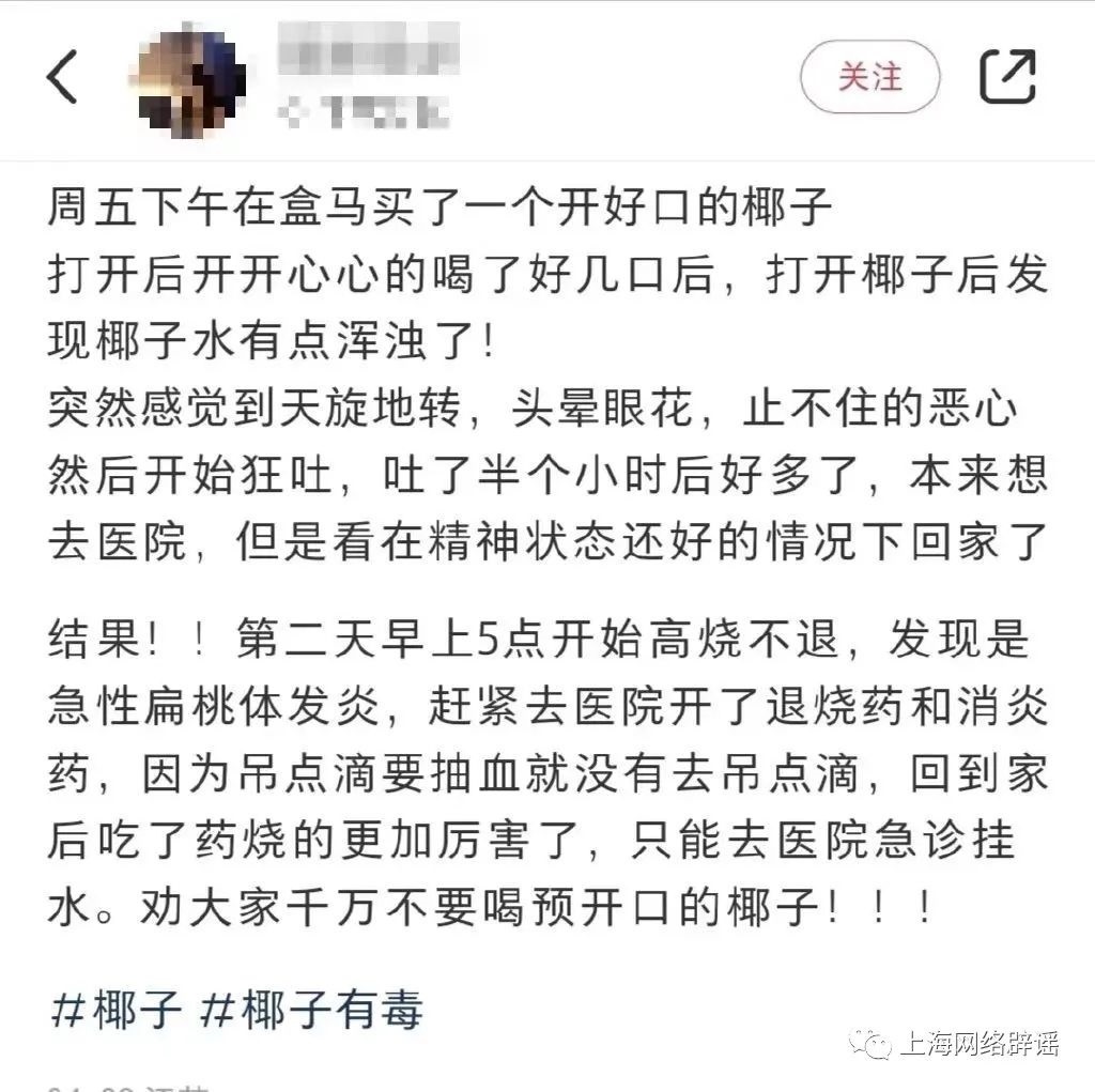 近日,椰子水頻頻登上熱搜,#喝預(yù)開口椰子進急診#等話題引起網(wǎng)友熱議。有網(wǎng)友反映,自己喝了預(yù)開口的椰子水后,惡心嘔吐、高燒不退。