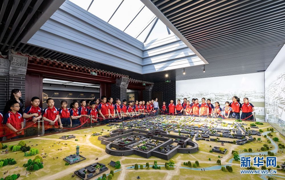 5月17日,呼和浩特市玉泉區(qū)南茶坊小學(xué)學(xué)生在歸化城展示館參觀歸化城沙盤。