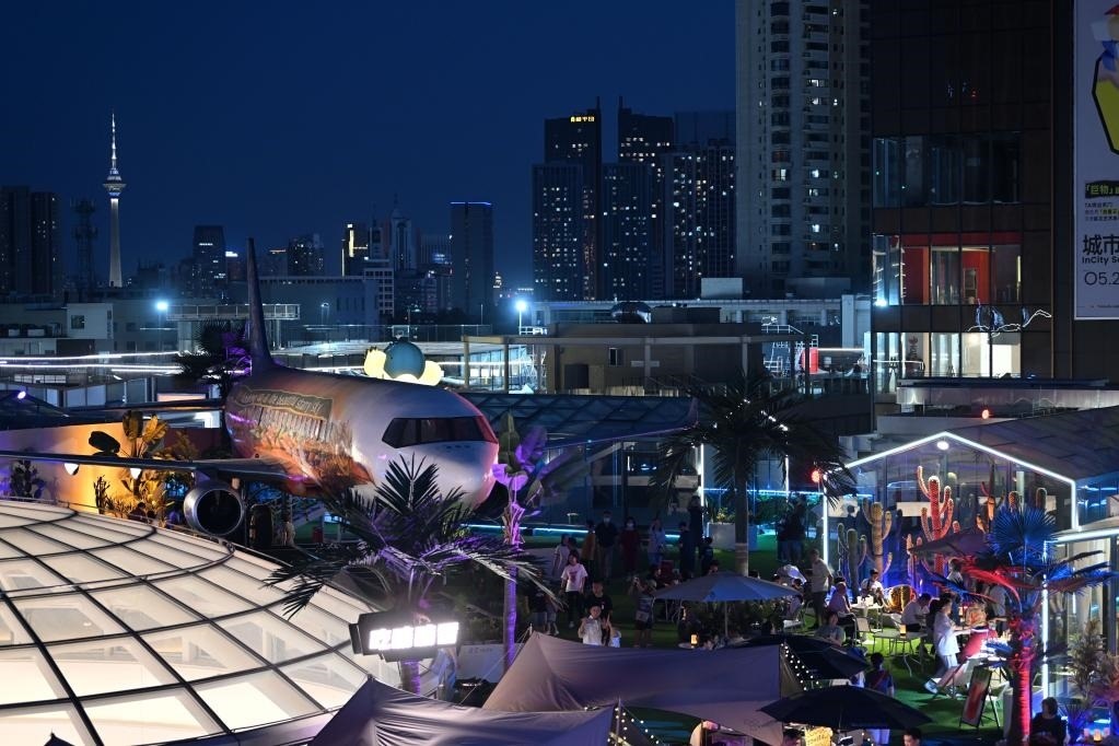 在天津市和平區(qū)金街商圈印象城,這是樓頂?shù)摹帮w機(jī)”主題酒吧。新華社記者 李然 攝