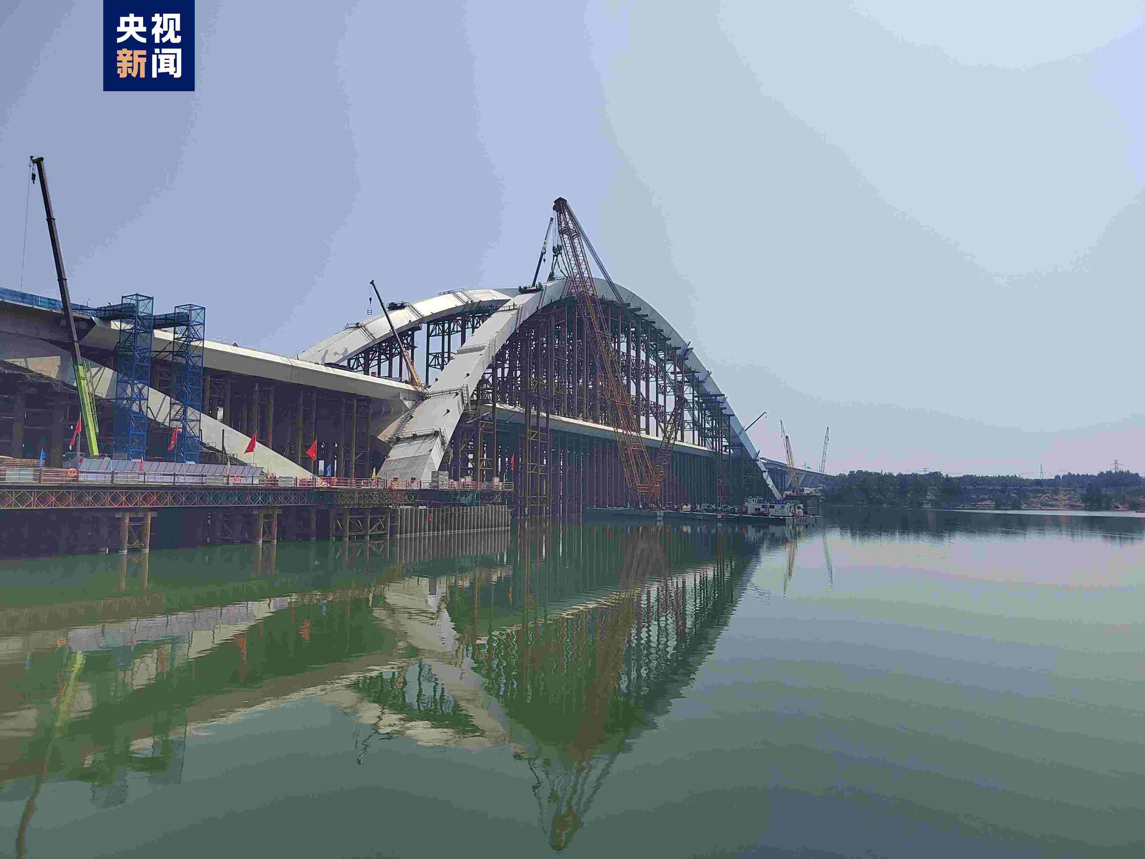 京雄大橋位于永定河與京雄高速“交匯點(diǎn)”,全長(zhǎng)1.62公里,其中東引橋410米、西引橋690米、主橋520米,主拱跨度達(dá)300米。大橋主梁寬度達(dá)48米,未來(lái)將承載京雄高速雙向八車道的車流。