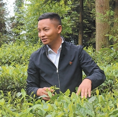 立克攏攏在茶園查看茶葉病蟲害防治情況。受訪者供圖