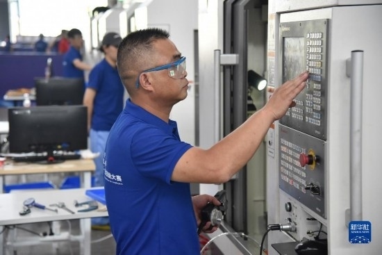 6月27日,參賽技術(shù)工人進(jìn)行數(shù)控銑工技能比拼。