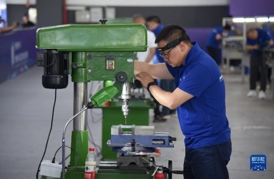 6月27日,參賽技術(shù)工人進(jìn)行鉗工技能比拼。