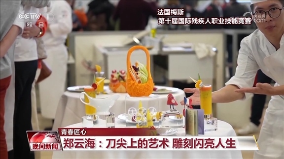 功夫不負(fù)有心人,鄭云海的雕刻技藝不斷精進(jìn),他也開始自主設(shè)計(jì)創(chuàng)作作品,并斬獲了多項(xiàng)國(guó)內(nèi)比賽冠軍。今年3月,在法國(guó)梅斯舉辦的第十屆國(guó)際殘疾人職業(yè)技能競(jìng)賽食品雕刻項(xiàng)目比賽中,他奪得金牌,成為食品雕刻屆的世界冠軍。
