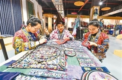 在苗族聚居的貴州,近年來將這一文化瑰寶作為產(chǎn)業(yè)大力推動發(fā)展,婦女們背著娃、繡著花、養(yǎng)活自己養(yǎng)活家,不僅用一針一線“繡”出美好生活,還將蘊(yùn)藏著古老文化的苗繡巧妙融入時(shí)尚元素,形成產(chǎn)業(yè)融合互動。如今,古老的苗繡日益走進(jìn)大眾生活,煥發(fā)蓬勃生機(jī)。