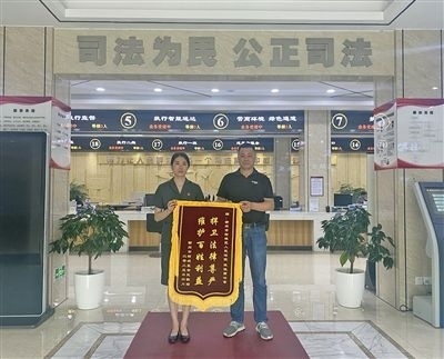 柯城區(qū)人民法院執(zhí)行干警收到當(dāng)事人送來的錦旗。 盧夢(mèng)瑩 攝