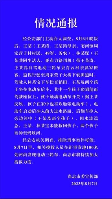 ·黑龍江尚志通報(bào)兩孩子墜河:誤觸電動(dòng)車(chē)開(kāi)關(guān),排除刑案可能。